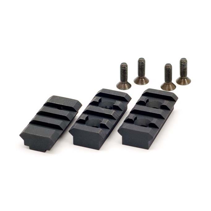 Each rail is machined to Picatinny rail standards from 6061-T6 aluminum with Mil-Spec Type III Class 2 finish. Available in black only. Includes four (4) 10-32 x 5/8″ flat head socket cap screws.