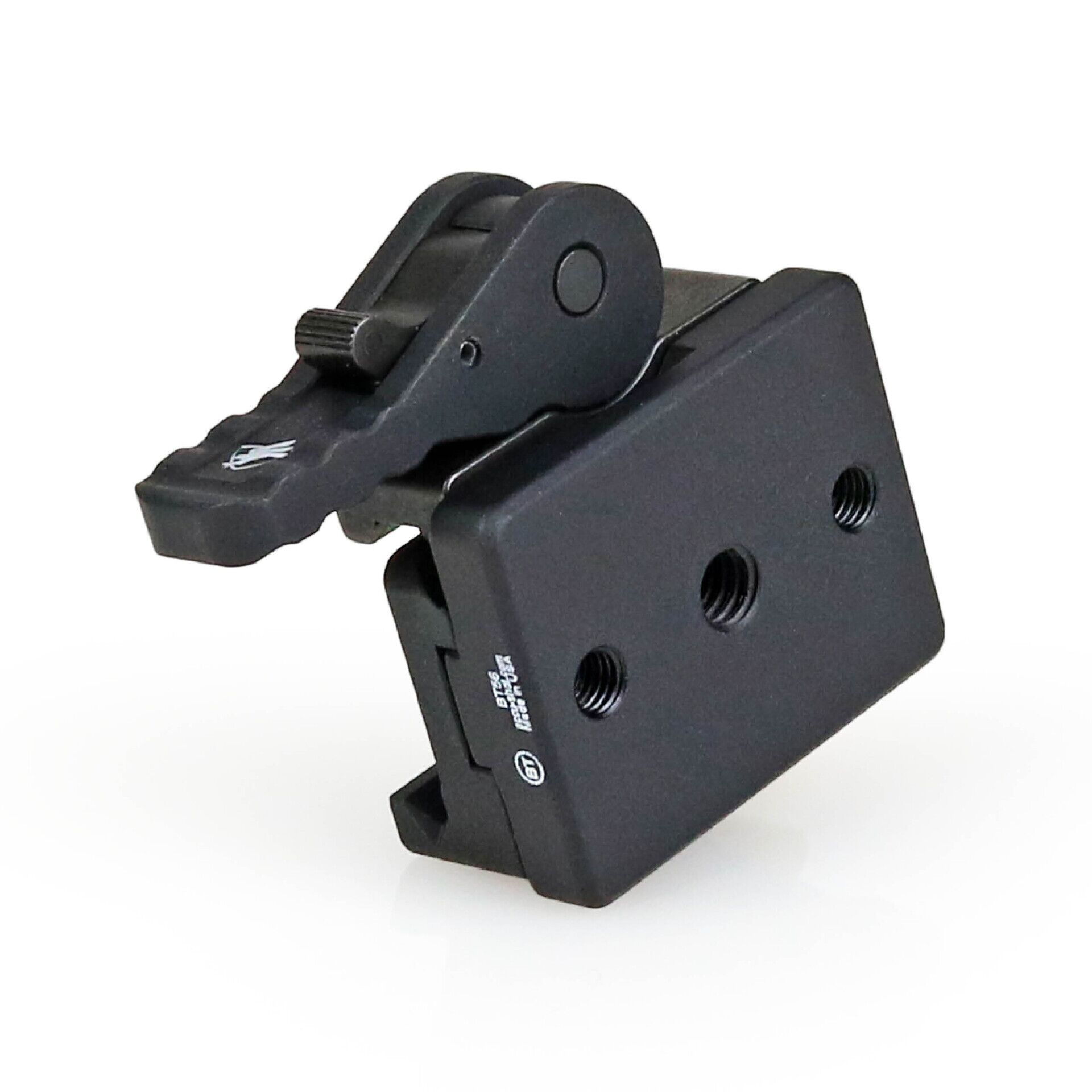 The BT56 LD-L 1/4-20 Lever Adapter is a Picatinny Rail mounting solution to interface between a Tripod or similar supporting device (shooting/walking/camera stick type monopod) with a standard ¼-20 threaded stud and a firearm with Picatinny Rail.