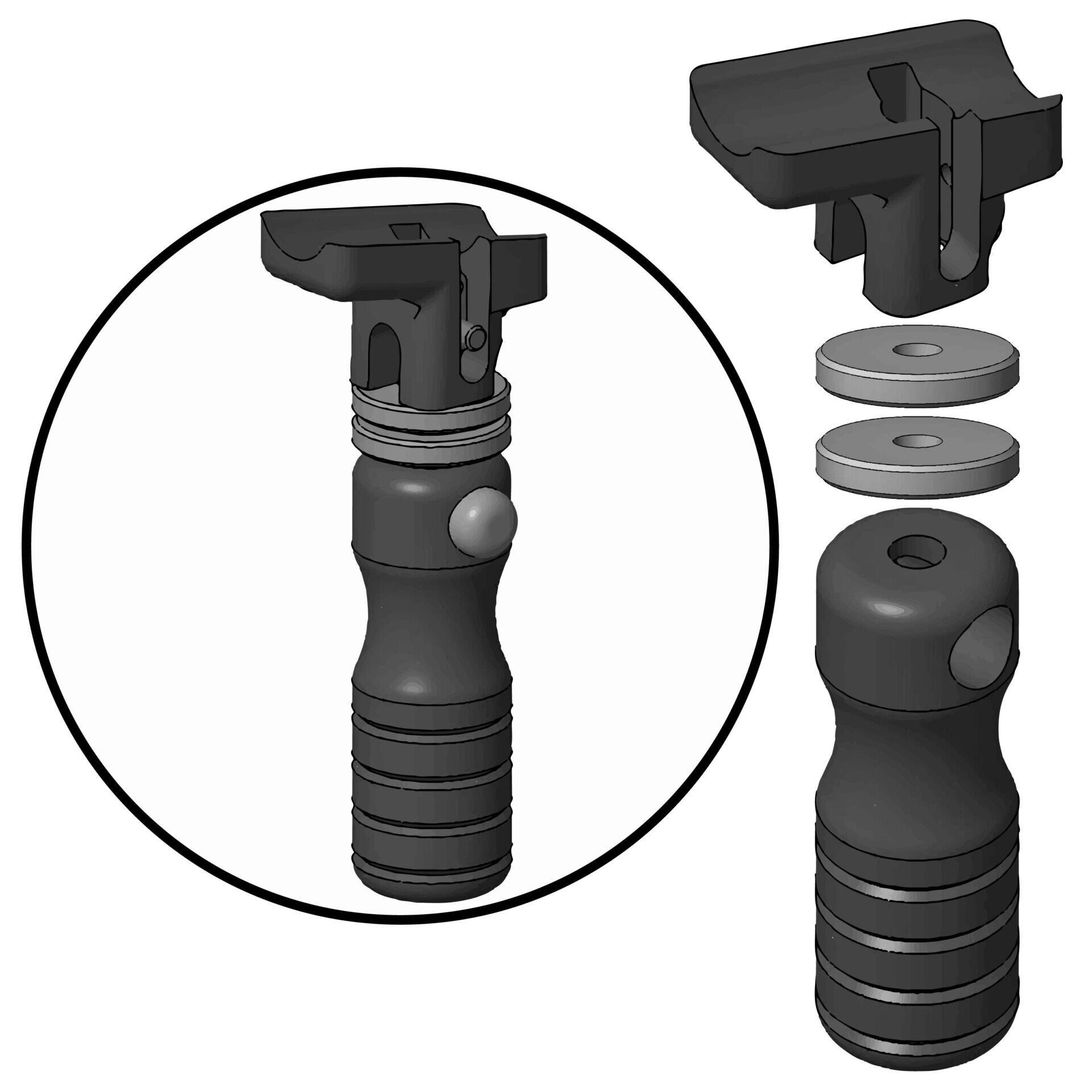 BT07 – If this monopod will see hard use, such as LE/Military or shooting off concrete, we advise replacing the standard plastic cap with the optional steel Tac-Cap (Part # BT07). If BT07 Tac-Cap is purchased at the same time with a monopod, your monopod will be delivered with the Tac-Cap installed.