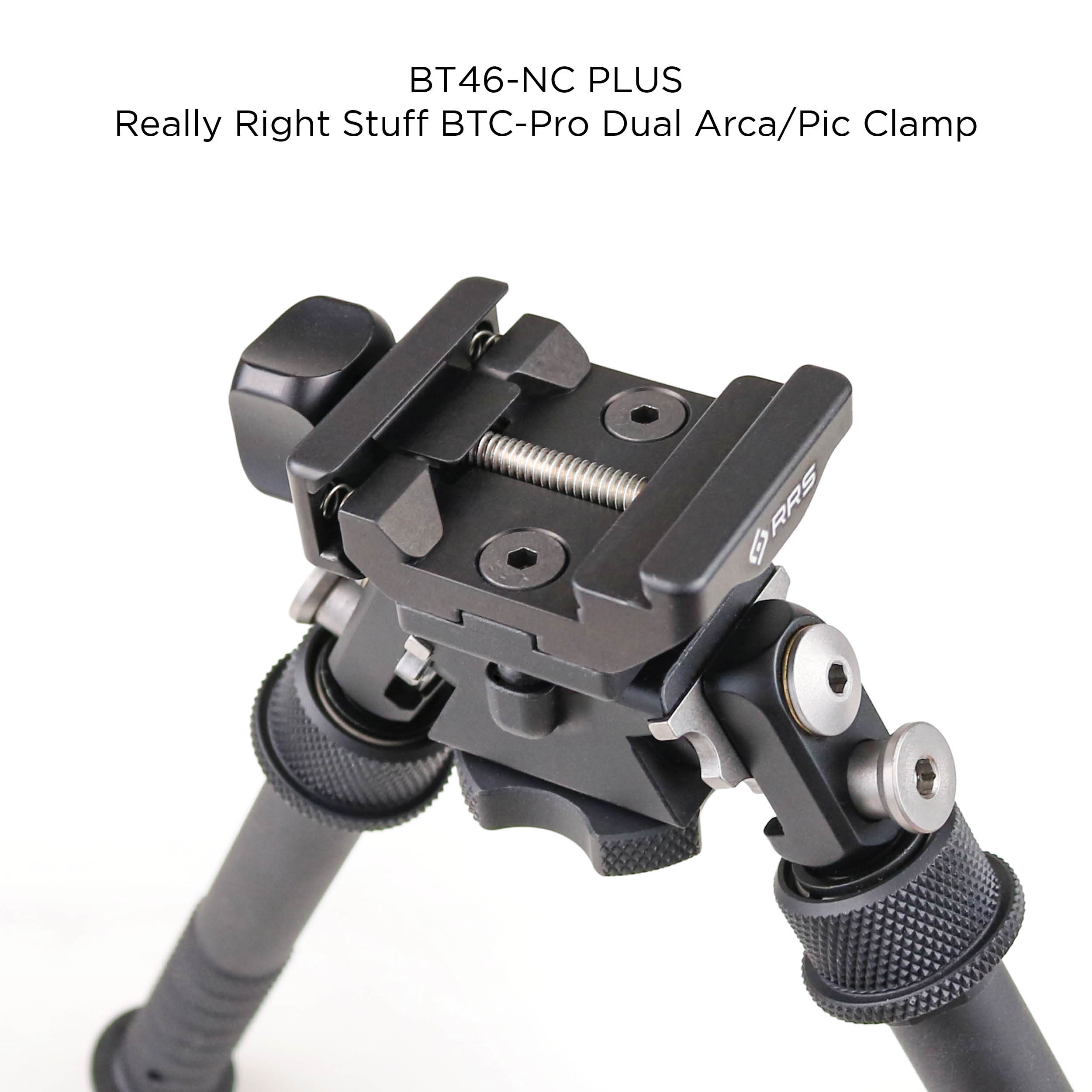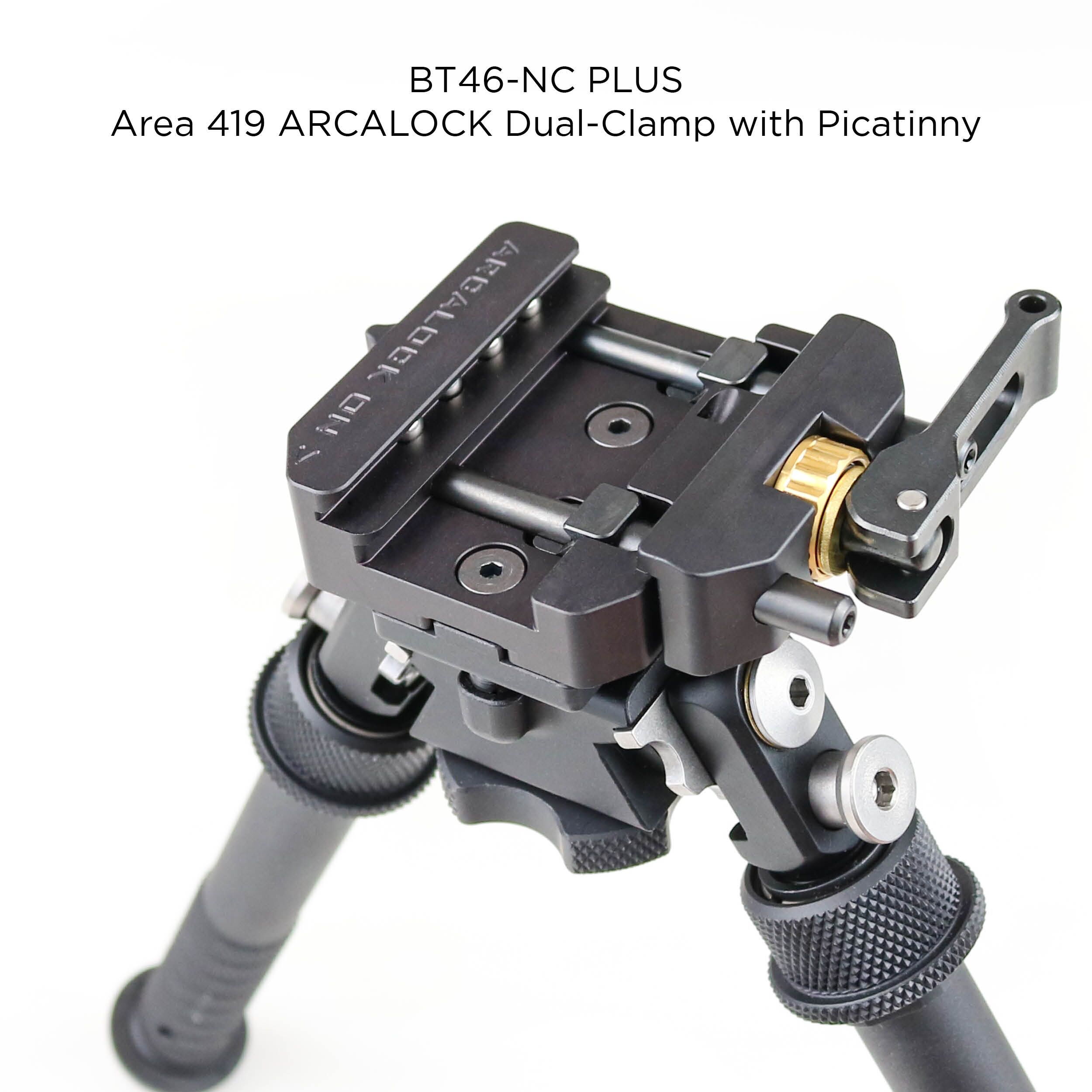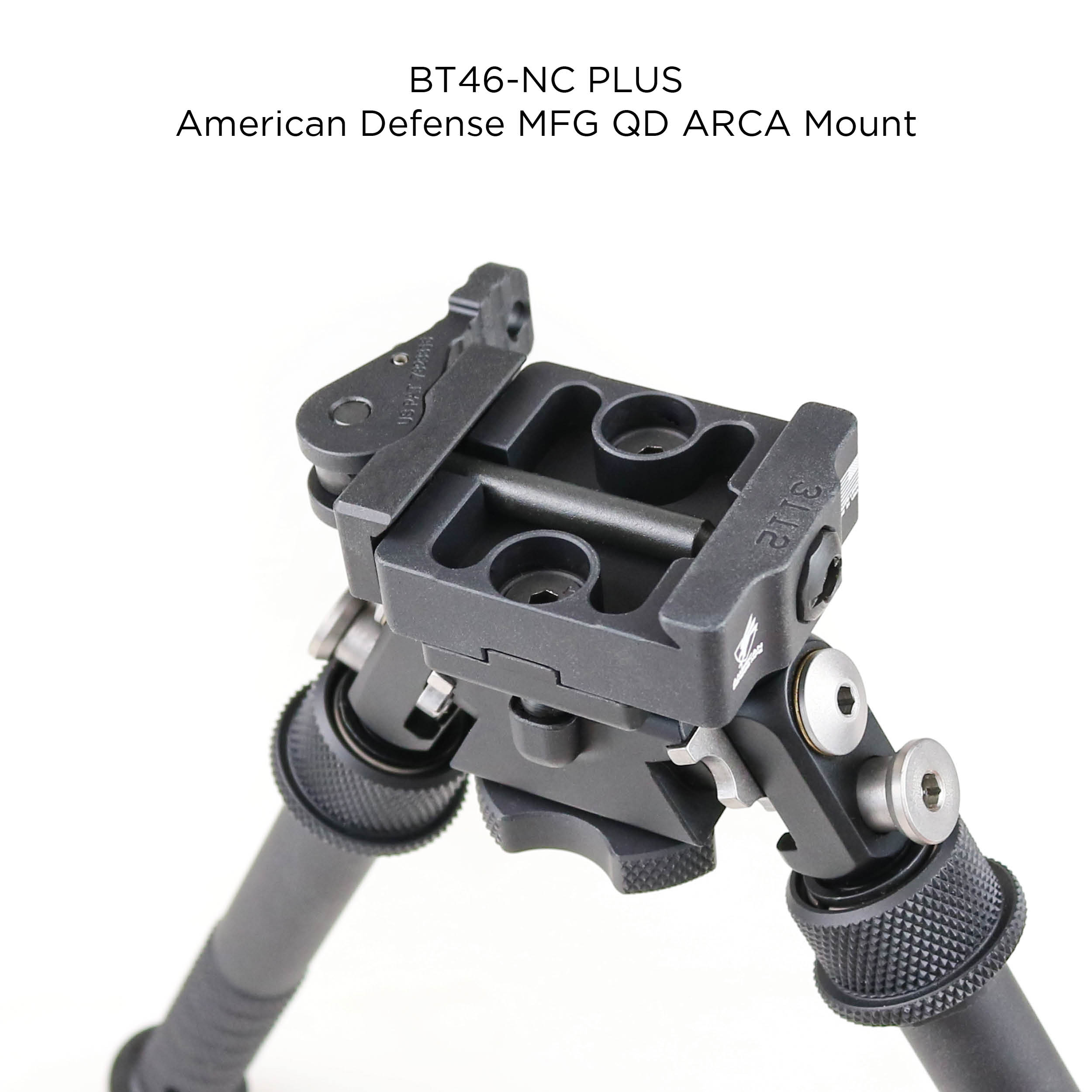 The BT46-NC is comprised of 6061-T6 aluminum, except the strengthened inner legs which are made from 7075-T6 aluminum that are Mil-Spec Type III hard coat anodized with heat treated, stainless steel components. Includes two 10-32 x 3/8″ flathead socket screws. Available in black only.