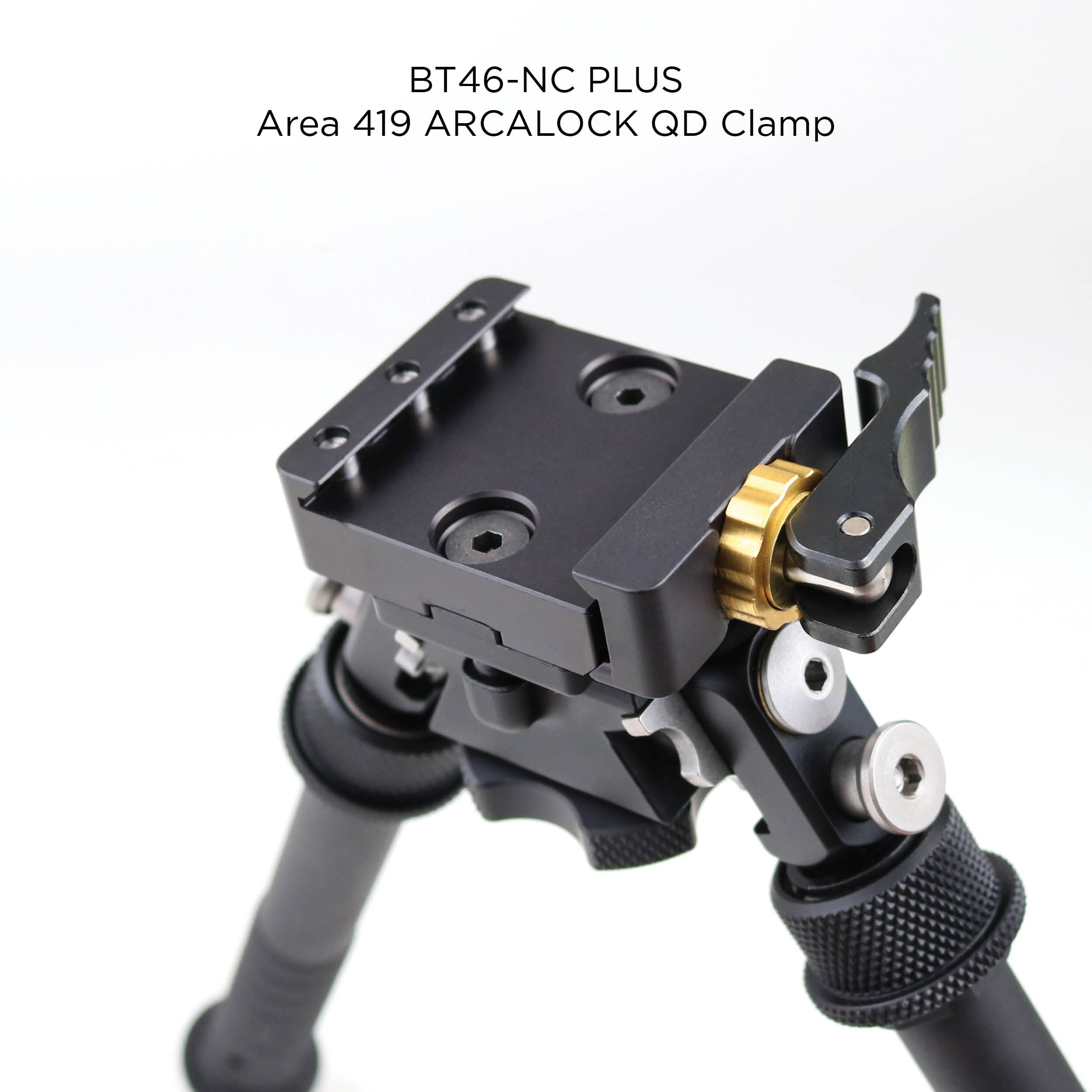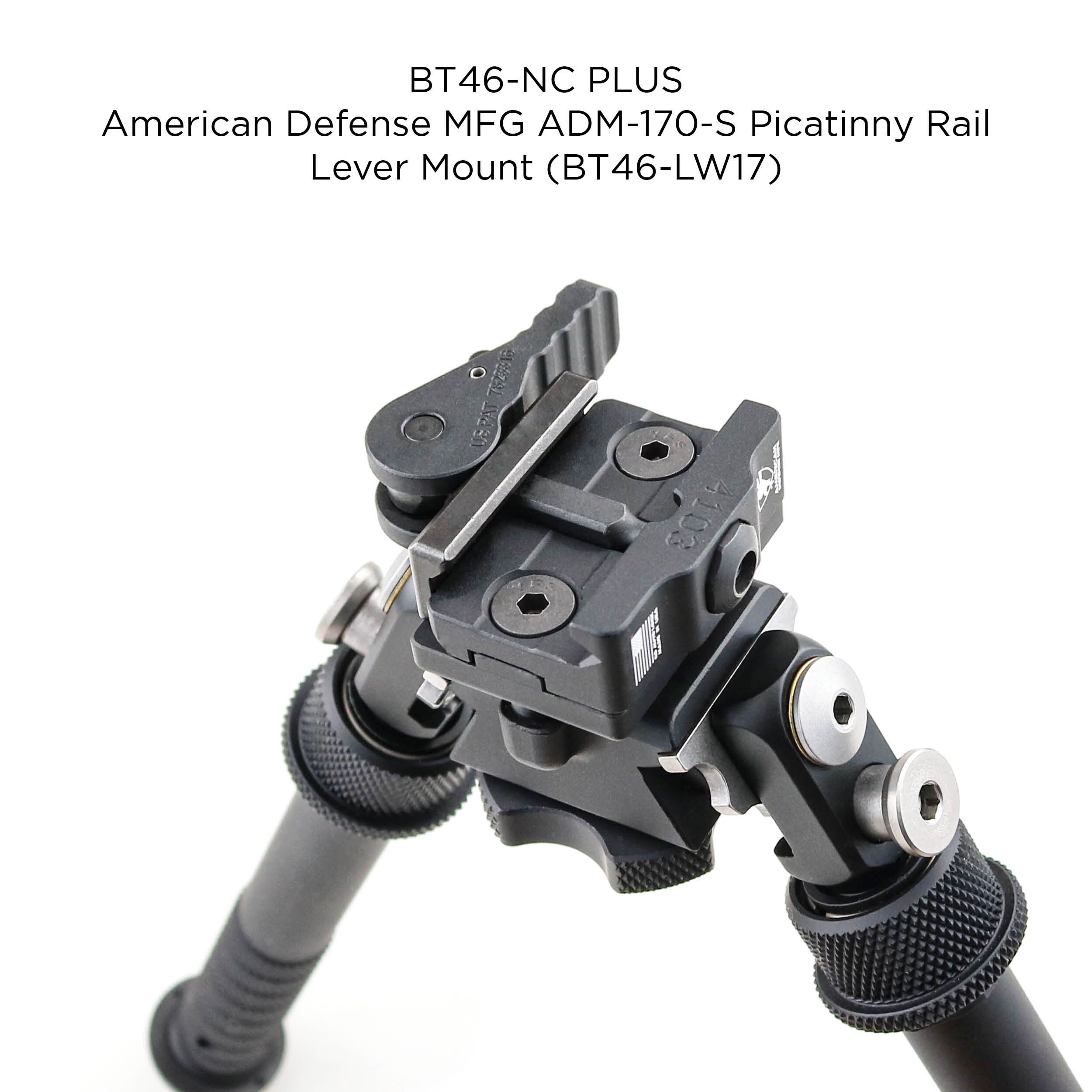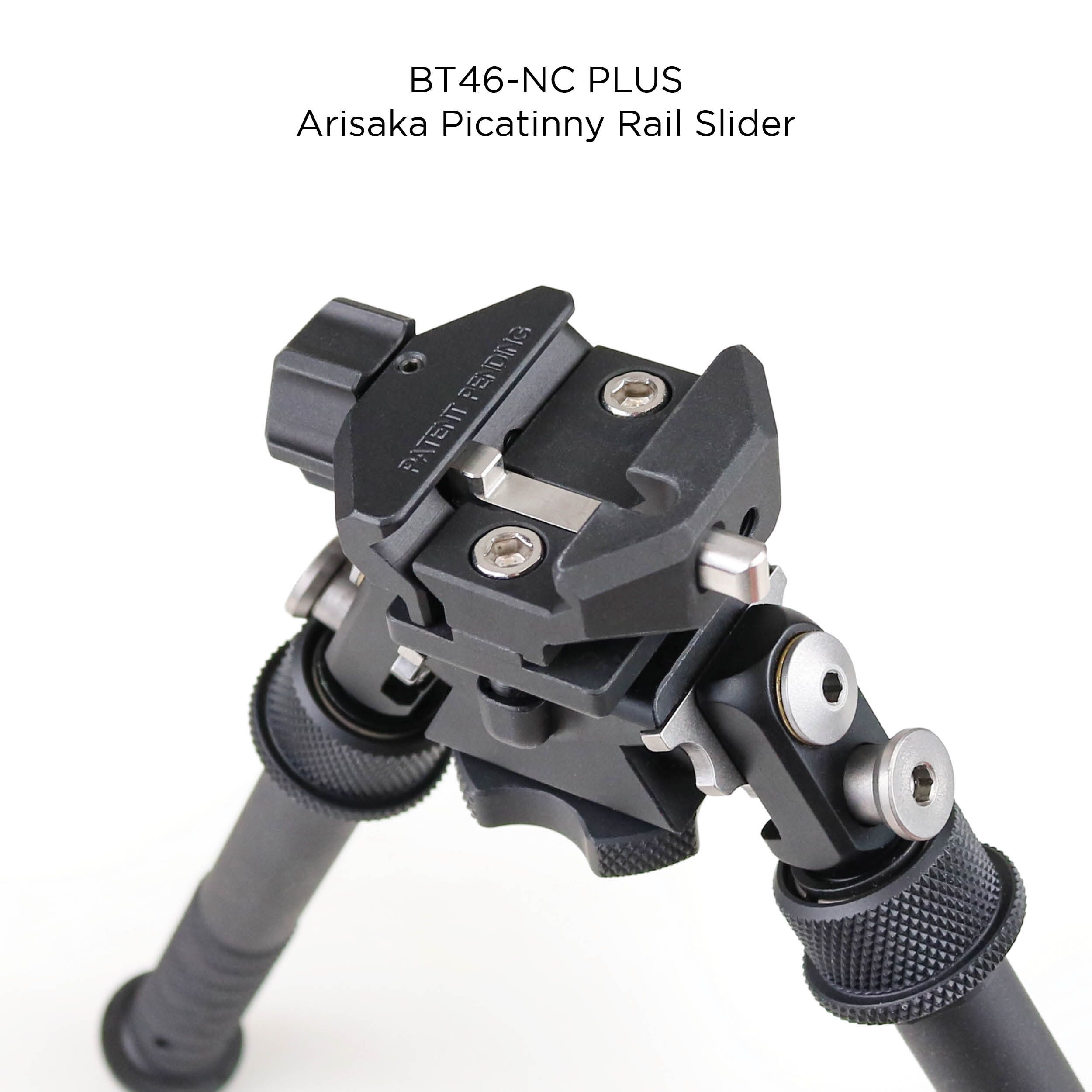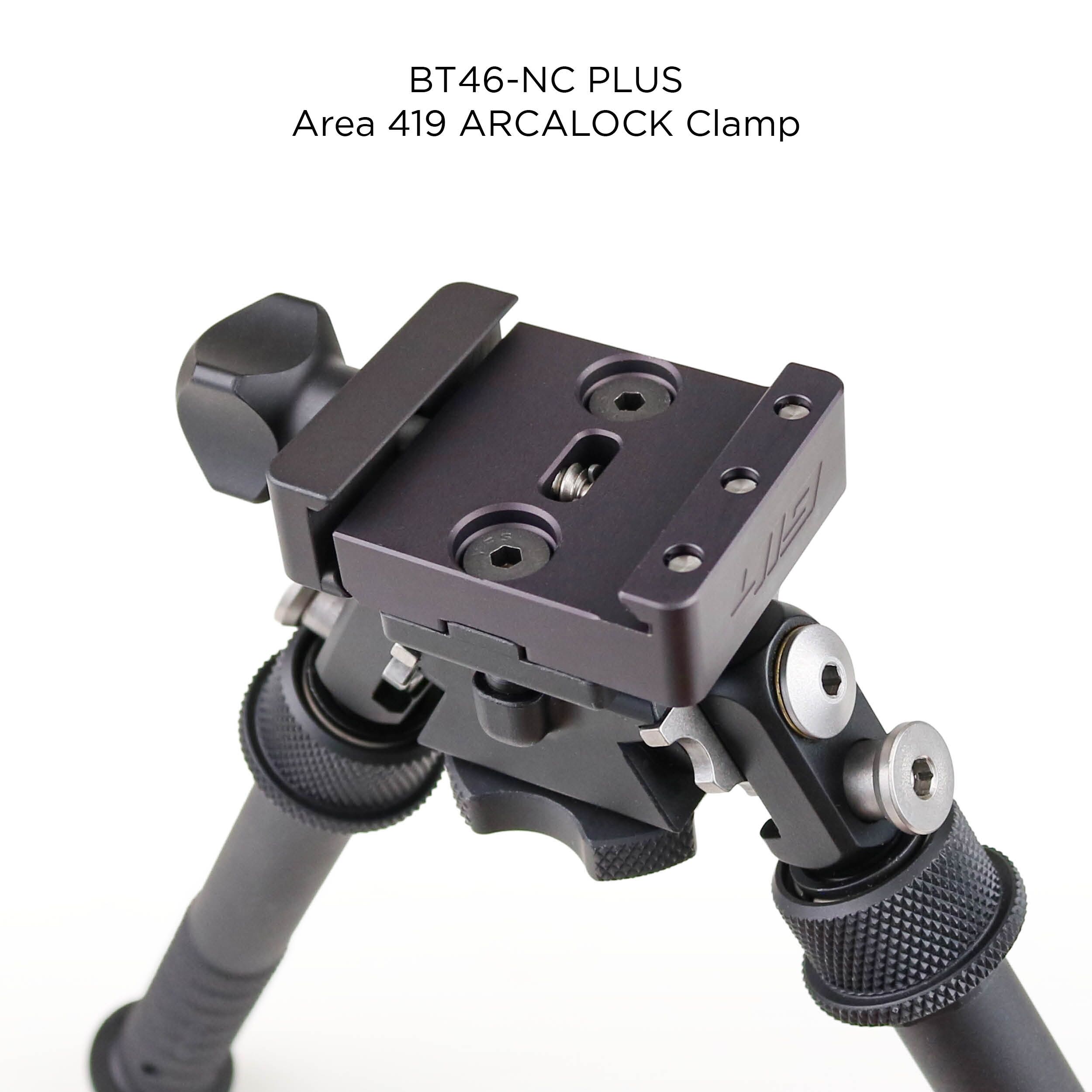 The BT46-NC is comprised of 6061-T6 aluminum, except the strengthened inner legs which are made from 7075-T6 aluminum that are Mil-Spec Type III hard coat anodized with heat treated, stainless steel components. Includes two 10-32 x 3/8″ flathead socket screws. Available in black only.