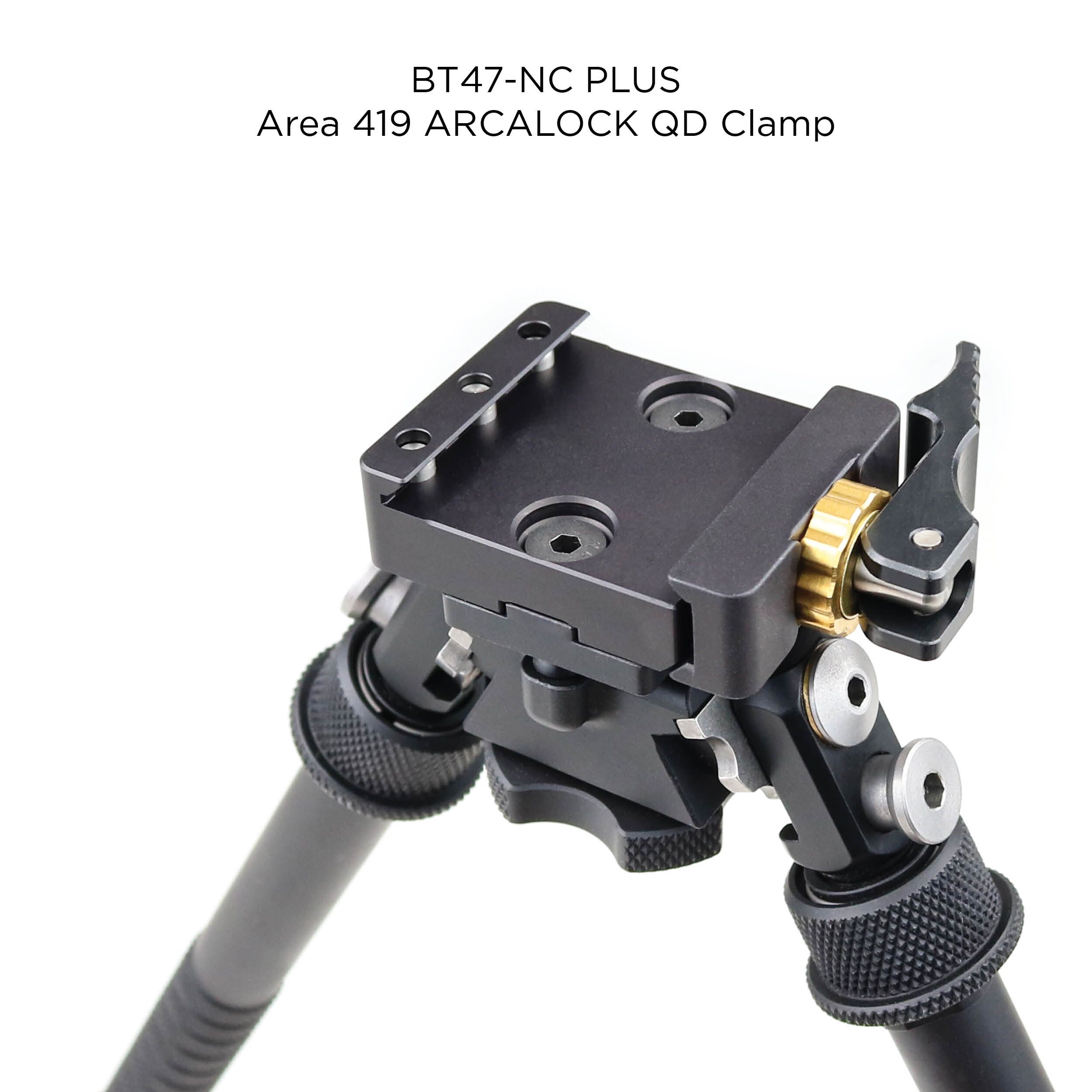 The BT47-NC is comprised of 6061-T6 aluminum, except the strengthened inner legs which are made from 7075-T6 aluminum that are Mil-Spec Type III hard coat anodized and have heat treated, stainless steel components. Includes two 10-32 x 3/8″ flathead socket screws. Available in black only.