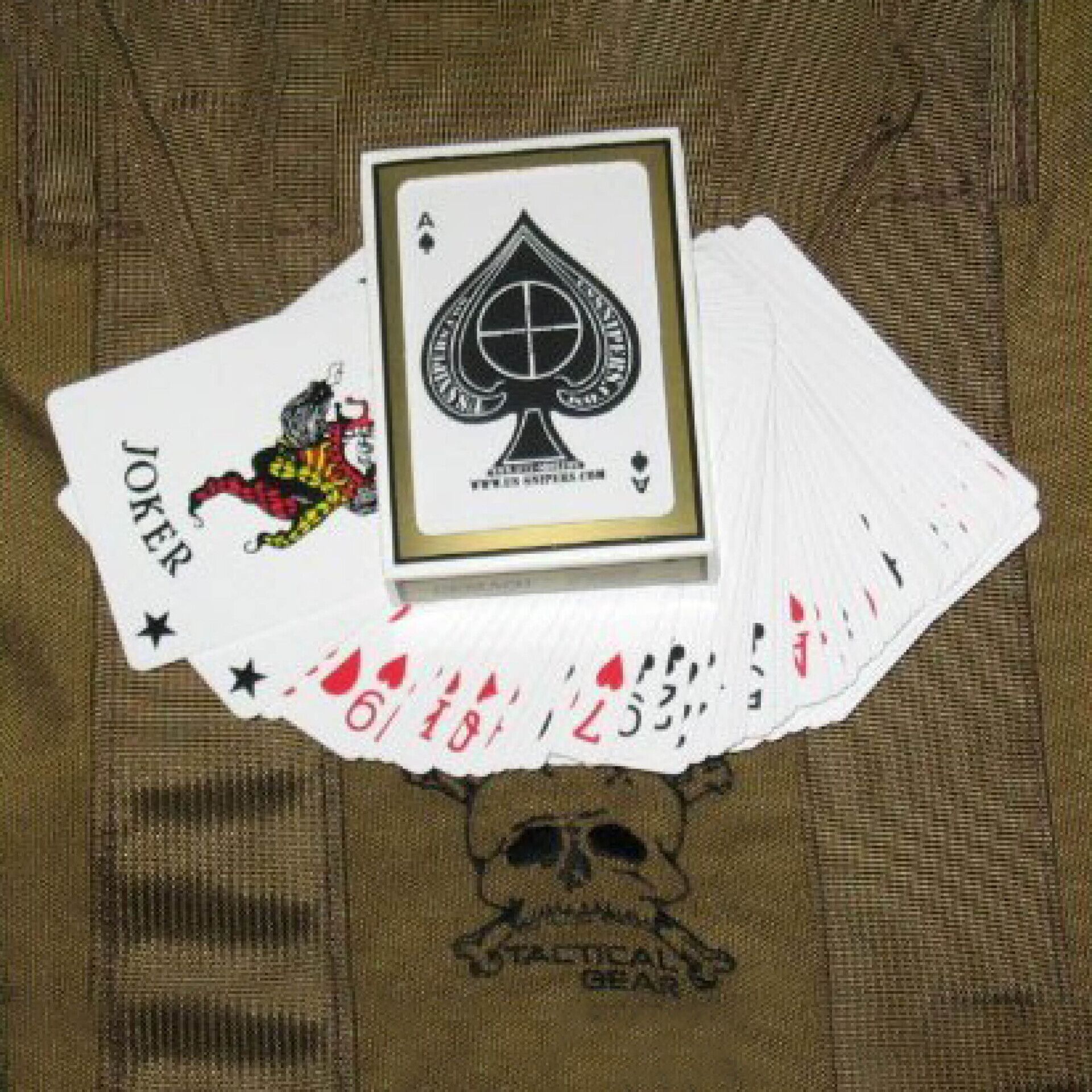 U.S. Snipers Poker Playing Cards appear similar to the US08: U.S. Snipers Death Calling Card, but with playing card faces.