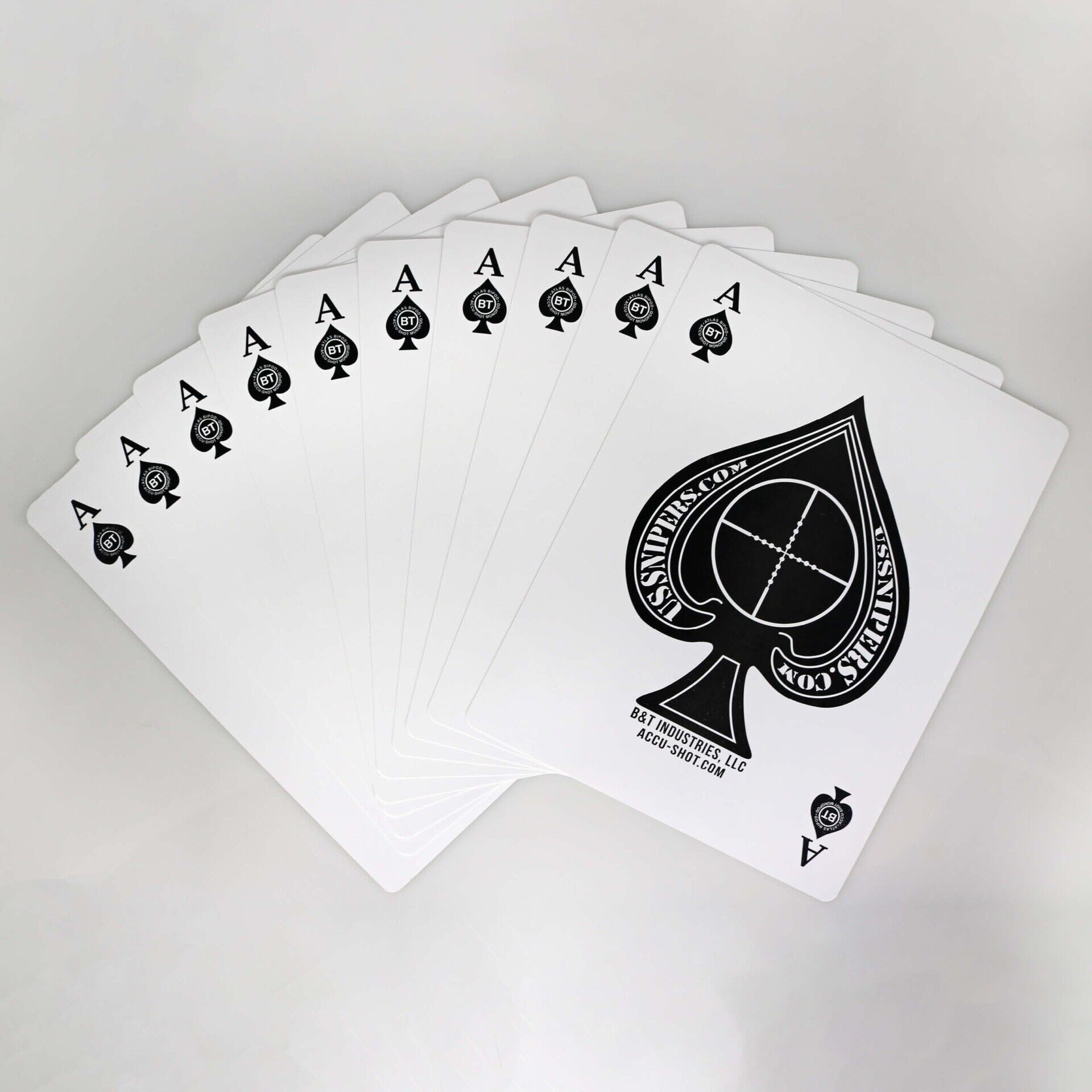 The US10 ELC features our “Ace of Spades” logo printed with black thermography on heavy card stock just like the original US08 cards used for the Accu-Shot One-Shot Challenges™. They are blank on the back and measure 11 x 8.5″.